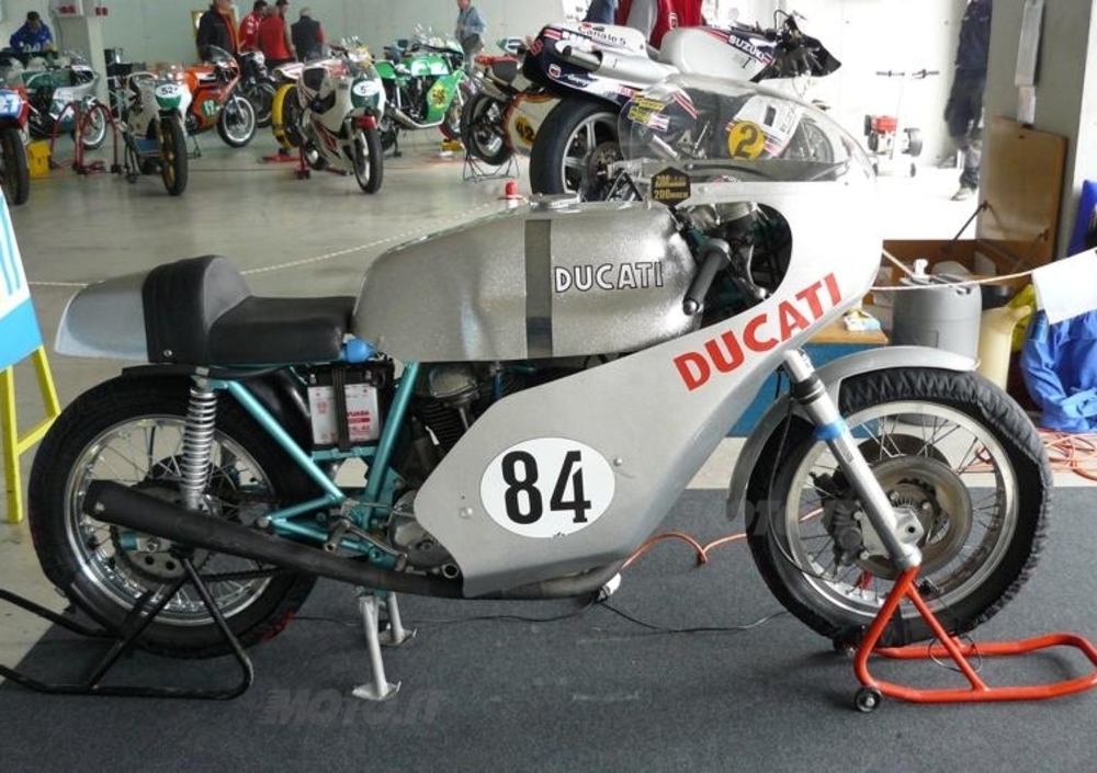 Ducati 750 – Nel 1972 impiegava il telaio “largo” della GT. La distribuzione era desmodromica, la forcella era