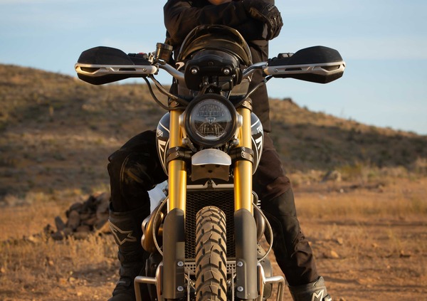 La Scrambler 1200 XE di Ernie affronterà la Mexican 1000 con un allestimento pressoché standard: le uniche modifiche riguardano infatti la sella racing, i fari, le manopole e i pneumatici specifici per l’utilizzo sugli insidiosi fondi sabbiosi della gara. Nuova anche la grafica racing bicolore bianco e nera.