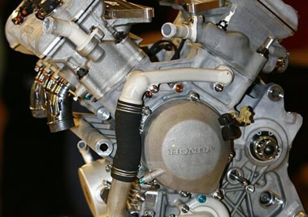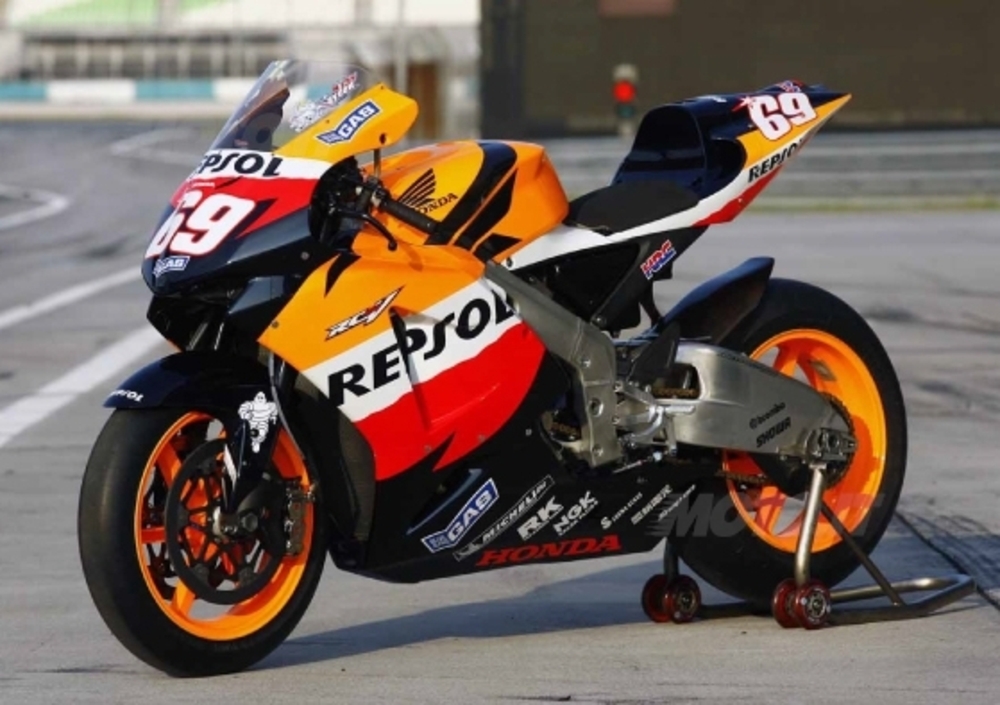 Ma per il 2007 il regolamento della MotoGP cambiò, e la cilindrata della classe regina venne ridotta ad 800 cc. Quasi tutti i competitor non fecero che progettare delle versioni ridimensionate dei loro motori, ma non Honda, che proegettò ex-novo un V4, ovviamente ispirato al mitico, plurivittorioso predecessore con un cilindro in più. Una volta di più, dunque, Honda contribuì alla storia del motociclismo da corsa realizzando il primo V4 a 4 tempi destinato alla top class del motomondiale. Un motore molto compatto, che garantiva un’eccellente centralizzazione delle masse, consentendo quindi la realizzazione di una ciclistica a sua volta molto compatta, ed estremamente maneggevole.