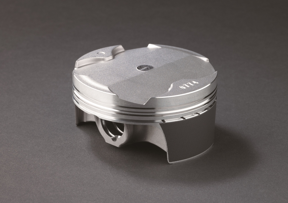 I pistoni sono forgiati in entrambi i casi; quelli della moto di Iwata hanno una struttura “bridged box”, con nervature all’esterno delle portate per lo spinotto e ponticelli di irrigidimento interni, che collegano le pareti laterali. La Kawasaki ha cambiato lega di alluminio per i suoi pistoni, di altezza straordinariamente ridotta (è meno del 50% del diametro); presumibilmente è passata da una lega al silicio a una al rame, come la 2618 usualmente impiegata per questi componenti, se destinati ai motori da competizione.