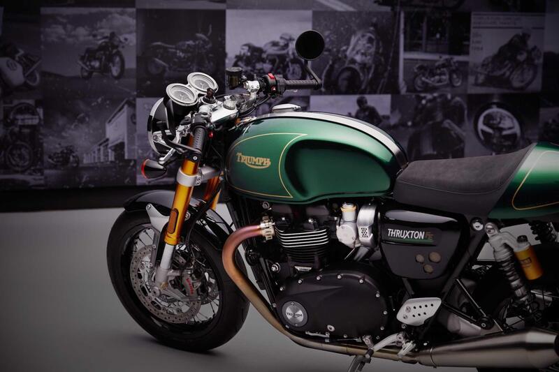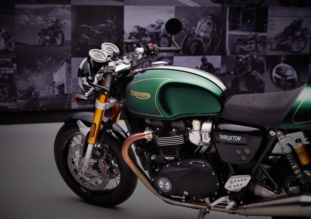 La FE è sviluppata sulla base tecnica dell'attuale RS quindi la più sportiva delle Thruxton con una dotazione completa e frutto di anni e anni di sviluppo e aggiornamenti continui. Ciò che salta subito agli occhi è la finitura - che Triumph non esita a definire impeccabile - nell'esclusiva livrea Competition Green, quel verde che da sempre caratterizza le inglesi da corsa. Le filettature dorate sono realizzate a mano ed ogni moto porta la firma dell'autore.