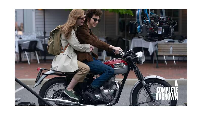 In A COMPLETE UNKNOWN, la Bonneville T100 non è solo un dettaglio storico all'interno di un film, ma è anche il simbolo di un periodo di grande fermento creativo e culturale. Con il suo design minimalista e la sua rilevanza culturale, questa moto si integra perfettamente nel set che ricrea il quartiere di Greenwich Village degli anni Sessanta, rendendo ancora più realistico il mondo di Bob Dylan.