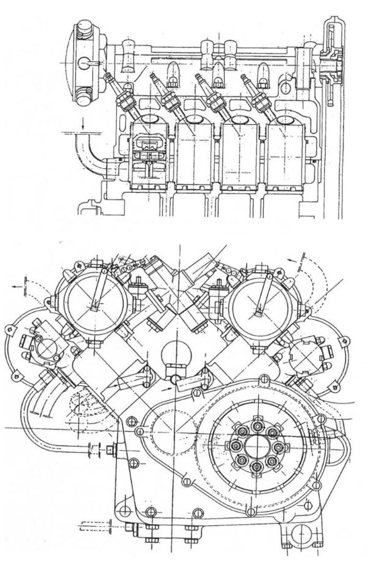 La V fra i cilindri, tre anteriori e due posteriori, era di 75,5° e la potenza superava i 200 cavalli, maggiore quindi rispetto alle 500.