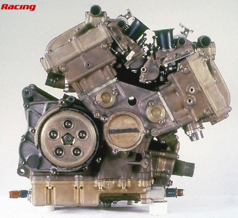 Come se non bastasse, oltre alla cilindrata giocoforza equivalente, non era possibile superare il frazionamento di quattro cilindri imposto dal regolamento tecnico, e quindi non c'era proprio modo di competere ad armi pari. Tuttavia, sperimentando lo sperimentabile sull'intera moto oltre che sul motore, e investendo ingenti risorse, Honda pensò di poter vincere. Il suo quattro cilindri sfruttava pistoni - definiti impropriamente "ovali"- con due bielle ciascuno, e camere di combustione con otto valvole ciascuna: i progettisti, insomma, rincorrevano i vantaggi di un V8 pur con soli quattro cilindri, e con gli svantaggi di una termodinamica meno efficace rispetto ad un vero otto cilindri .