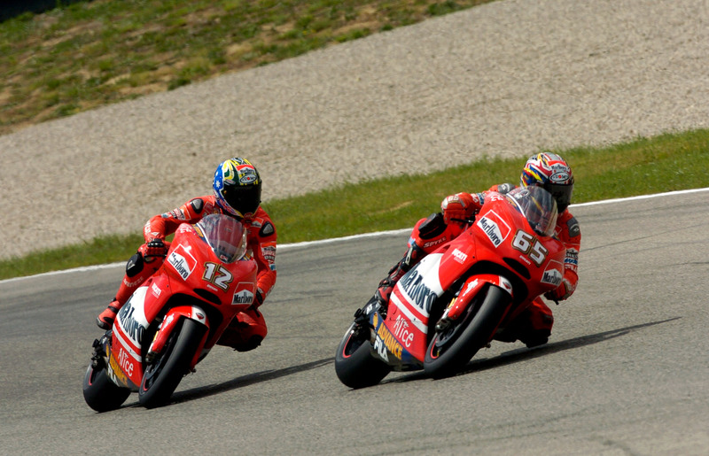 Facciamo un passo indietro e torniamo al 2003. Ducati entra in MotoGP con un anno di ritardo sull’introduzione della nuova formula, ma lo fa in grande stile: la Desmosedici guidata da Capirossi e Bayliss è competitiva fin da subito. A Barcellona, nei test precampionato, fa segnare velocità da spavento, Capirossi sale sul podio a Suzuka, all’esordio, ci torna al Mugello e vince al Catalunya complice un errore di Rossi. Bayliss non è da meno, e a fine anno, anche se nessuno lo dice apertamente, per il 2004 si punta al titolo.