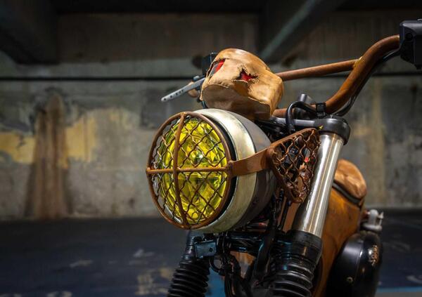 “Ho tratto libera ispirazione dal mondo di Mad Max e Tank Girl. Ogni modifica è stata pensata meticolosamente e il motivo di fondo che ho scelto è quello del lupo. La sua presenza simboleggia la forza, l’indipendenza e la feroce determinazione neIla conquista delle strade…”