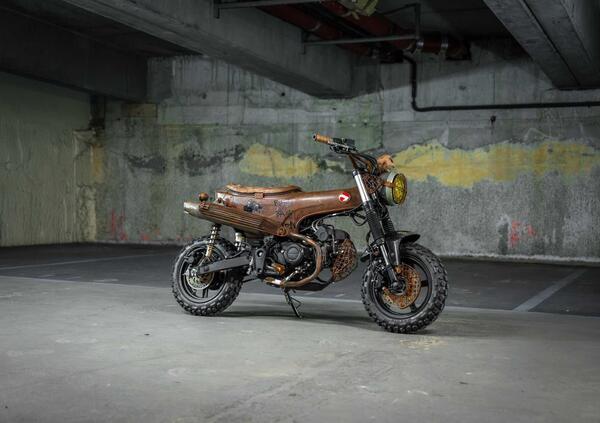 Tamara Alves e il preparatore Art On Wheels Garage hanno trasformato un Dax in un mezzo post apocalittico: pneumatici tassellati, grafica a tema lupo, graffiti, scarico su misura con retina metallica e dettagli a trama tartan che sbucano dal rivestimento del sedile. L'estetica di Tamara Alves arriva dalla strada e dagli spaccati del contesto urbano. Il suo lavoro si basa sulla vitalità primordiale nella quale siamo descritti dai nostri istinti.