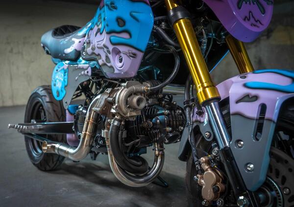L'artista francese Michaël Eveno, noto ai più come Grems e il customizer George Woodman hanno portato la pop-art e i suoi colori pieni e vibranti su una Honda Monkey. Grems è un artista visivo e anche un musicista. Vanta 6 album da solista, 8 pubblicazioni in collaborazione con artisti come Klub sandwich, e partnership con numerosi brand inclusi Nike, Swatch e Converse.