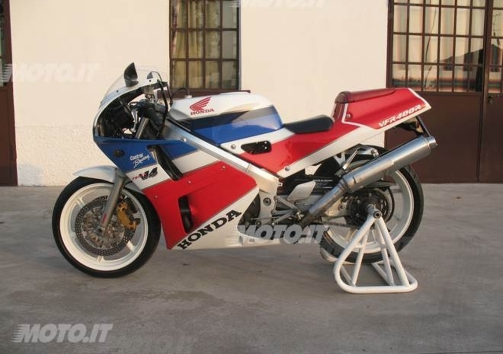Oggi ci occupiamo di una Honda VFR400R, nota anche agli appassionati con la ben più corsaiola sigla di NC30, che identificava le sorelline minori dei modelli Made in HRC della Casa di Tokyo. Ma facciamo un passo indietro: la classe 400 è stata per lunghissimo tempo importantissima per le Case del Sol Levante. Categoria media per eccellenza sul mercato interno, dove la legislazione divideva in tre categorie le moto guidabili sul suolo nazionale (250, 400 e 750) e vietava la commercializzazione di moto di cilindrata superiore, la 400 era la cilindrata più appetibile per la stragrande maggioranza dei motociclisti giapponesi. La patente per la 750 era infatti estremamente costosa ed impegnativa da conseguire, prevedendo tra le altre prove il sollevamento da terra di una moto zavorrata del peso di oltre 240kg.