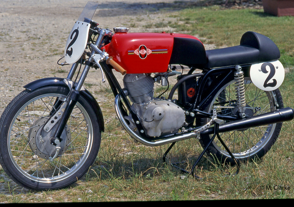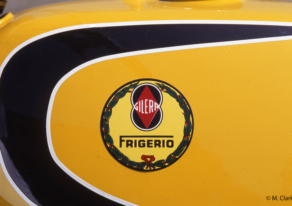 Ercole Frigerio è stato per diverso tempo uno dei migliori piloti di sidecar, specialità nella quale ha conquistato tre volte il titolo italiano utilizzando un motore Gilera 500. Nel 1951 ha aperto una concessionaria della casa di Arcore a Treviglio, ma pochi mesi dopo è incappato in un incidente mortale. A mandare avanti l’attività sono stati dapprima la moglie e successivamente i due figli Luigi e Piero. Negli anni Sessanta questi validi tecnici hanno iniziato a realizzare le loro special, focalizzando l’interesse sul fuoristrada, la cui popolarità in Italia stava continuamente aumentando. Naturalmente le moto che venivano trasformate erano le monocilindriche Gilera. Inizialmente però i Frigerio qualche attenzione l’hanno dedicata anche alla velocità. Nel 1965 hanno infatti preparato una bella 125 che ha preso parte alla durissima Sei Ore di Monza piazzandosi al secondo posto nella sua classe, preceduta solo da una Ducati monoalbero (che in origine vantava una potenza ben superiore, trattandosi di un modello studiato in ottica estremamente sportiva). Il tranquillo motore ad aste e bilancieri della Giubileo è stato elaborato portandone la potenza a 11 cavalli, ma anche la parte ciclistica ha ricevuto le dovute attenzioni, con il telaio trasformato in doppia culla chiusa e dotato di ben studiati rinforzi nella parte posteriore. La moto è stata portata al settimo posto assoluto da Masserini e Corti, funzionando impeccabilmente per l’intera durata della gara, nel corso della quale ha coperto 627 chilometri.