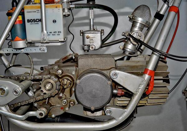 Sicuramente il monocilindrico Kreidler è di quelli che hanno fatto la storia. Non solo ha vinto moltissimo e ha davvero indicato la strada, ma il suo gruppo termico è stato sia copiato che utilizzato così com’era da un notevole numero di costruttori artigianali. Si trattava di un monocilindrico con un alesaggio di 40 mm e una corsa di 39,7 mm che nell’ultima versione è arrivato ad erogare 21 cavalli a un regime di oltre 16.000 giri/min.