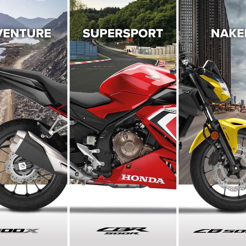 La gamma Honda CB500, tre modelli in configurazione naked, sportiva e crossover, è dedicata principalmente ai possessori di patente A2 grazie alla potenza che non supera i 35 kW (48 cavalli).