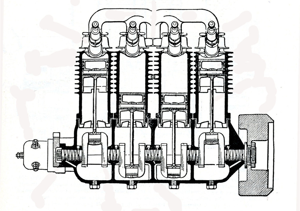Le Case che hanno utilizzato motori a quattro cilindri in linea, sempre disposti longitudinalmente, non sono state poche, e diversi loro modelli hanno avuto una larga diffusione, tra i primi del Novecento e gli anni Trenta. L’architettura in linea era la più semplice, e offriva interessanti vantaggi in termini di riduzione delle vibrazioni; l’impiego di quattro cilindri seguiva quella che in campo auto si era già allora rivelata una “formula” vincente. I cilindri erano di norma individuali, cosa che allontanava il rischio di distorsioni e semplificava il lavoro di fonderia. Certo, il motore era lungo, ma all’epoca ciò non sembrava costituire un problema.