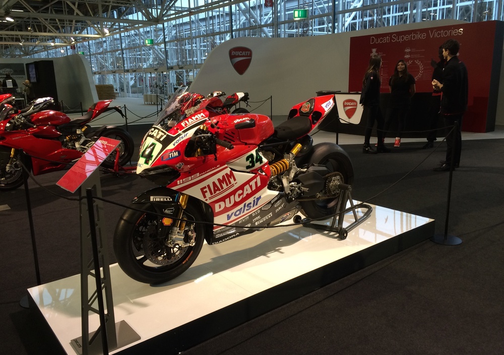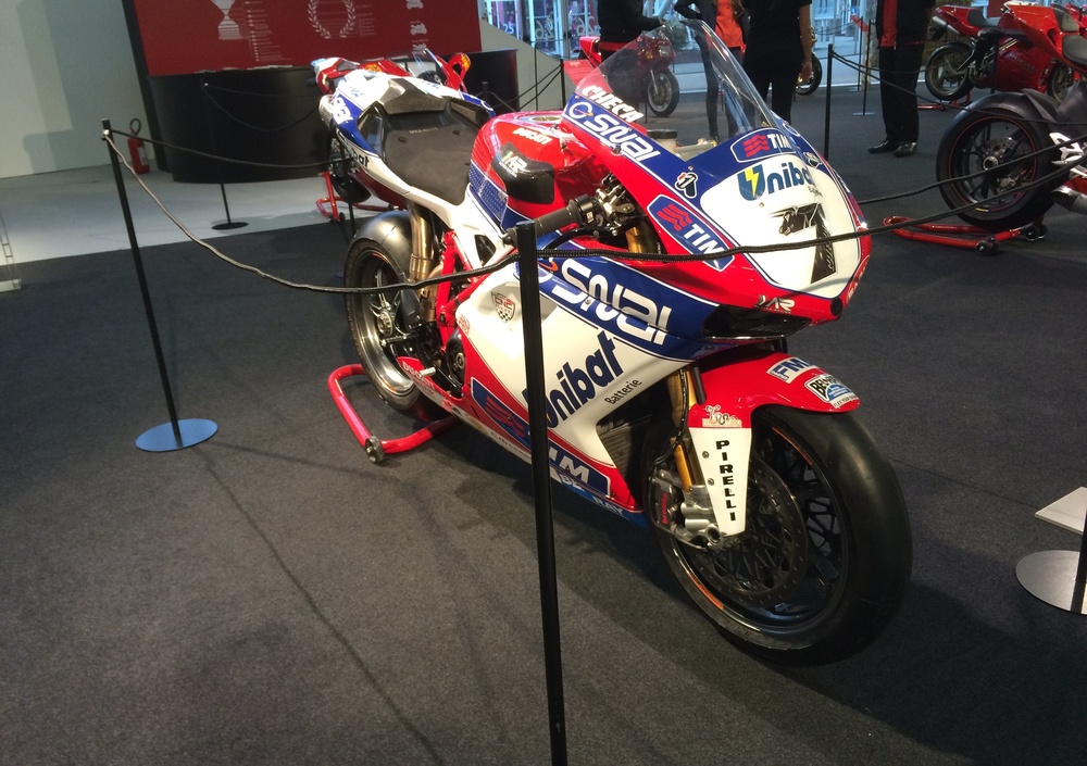 In mostra anche moto di serie come la 851 SP del 1991, affiancata dalla sorella da gara, la 888 Racing iridata nello stesso anno con Doug Polen (primo vincitore di un titolo Costruttori per Ducati) e naturalmente la 916 del 1994, anch’essa con la sorella da gara con cui “King” Carl Fogarty vinse il primo dei suoi quattro Mondiali. Immancabile un tributo a Troy Bayliss, rappresentato dalle 999 R (2005) e 999 (2007), ma spiccano anche la 1198 del 2009 e la versione Factory iridata con Carlos Checa nel 2011. E tanto per non dimenticare la produzione attuale, chi se la fosse persa ad EICMA può ammirare la nuovissima 1299 Panigale S.