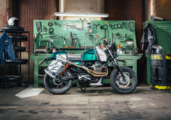 Chi si fosse perso il programma TV può godersi questa esposizione di pezzi unici nati sotto i riflettori. Tema della prima sfida era la "moto per l’esploratore", e i due preparatori hanno dato sfogo a tutto il loro ingegno e creatività per trasformare le Moto Guzzi V7 II a disposizione.