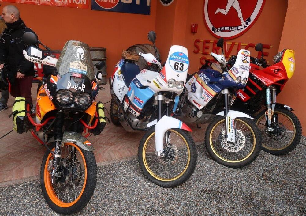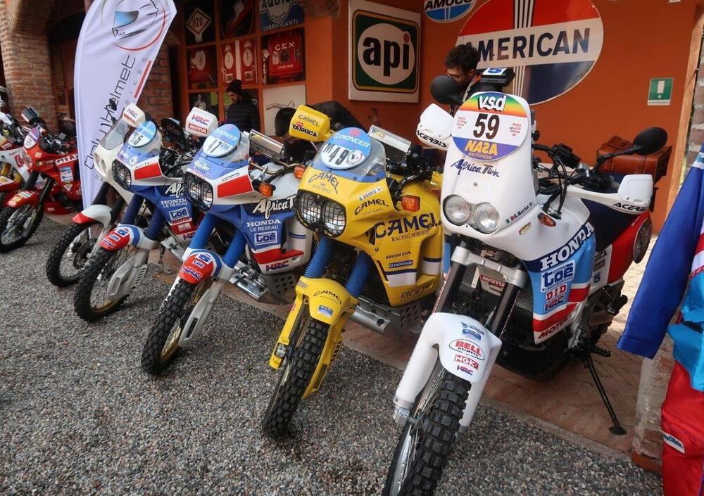 L’ambientazione della manifestazione non è stata un luogo qualsiasi, bensì il Museo Fisogni, che ospita la più completa raccolta di distributori di benzina al mondo, perfettamente conservati, e nato dalla passione di Guido Fisogni. Appena entrati all’interno di un antico casale perfettamente ristrutturato, spiccavano allineate svariate moto da rally. La prima persona che abbiamo incontrato è stato Marco Iavarone, uno tra gli organizzatori assieme a Only Helmet, Museo Fisogni ed Off Road Passion, e grandissimo appassionato di Dakar che, oltre ad avere coinvolto alcune “vecchie glorie” alla partecipazione all'evento, ha arricchito la giornata portando alcune delle sue moto, tra le quali c’è la Honda Africa Twin Marathon, l’originale, quella che nel 1989 ha corso la Parigi Dakar. Le altre moto presenti comprendevano la Yamaha Super Ténéré in versione Dakariana, così come una Gilera RC 600 replica della moto che fu usata per correre la Dakar nel 1990 (con Medardo e Mandelli) e tante altre moto sensazionali.