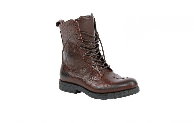 Sono gli anni sessanta e lo stile rocker ad aver influenzato i designer Dainese nella progettazione di questi stivali. Un immaginario fatto di giubbotti in pelle, spille, brillantina, gare sulla North Circular (la circonvallazione che congiunge l’est di Londra con la parte opposta della città), sparate fino a Brighton e, appunto, anfibi da lavoro. Lo stile vintage si contrappone a soluzioni tecniche del tutto contemporanee, come una fodera a doppia frontura traspirante, protezioni in nylon sui malleoli e un utilizzo della migliore pelle bovina, con inserti in pelle crosta.