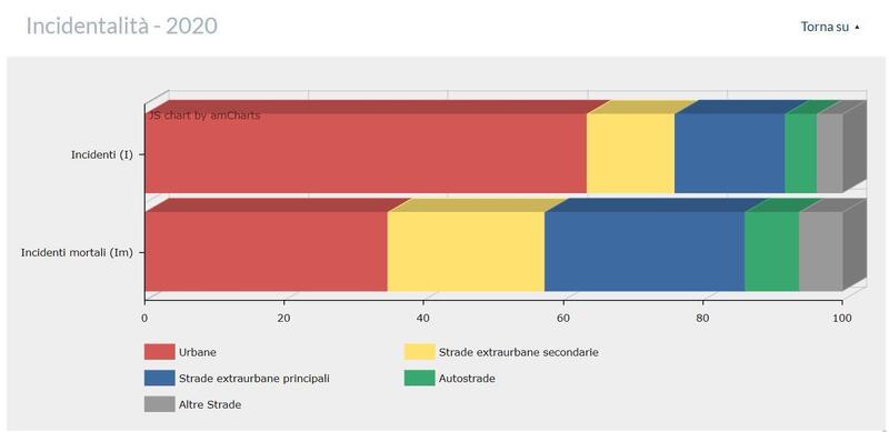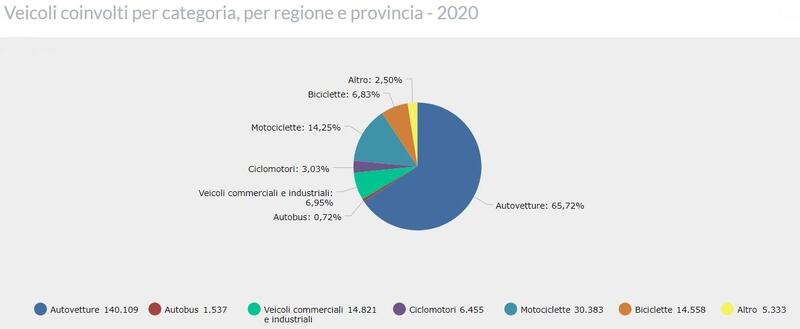 Sulle strade extraurbane, seconde per numero di incidenti e per gravità rispetto alle strade urbane dove il traffico è anche superiore, nel 2020 le cose sono peggiorate per i cosiddetti utenti vulnerabili che hanno rappresentato il 40% delle vittime. In particola i motociclisti sono stati 239, i pedoni 82 e i ciclisti 39.