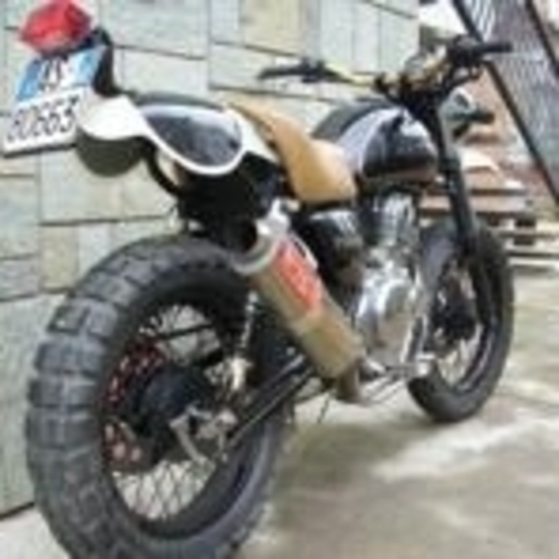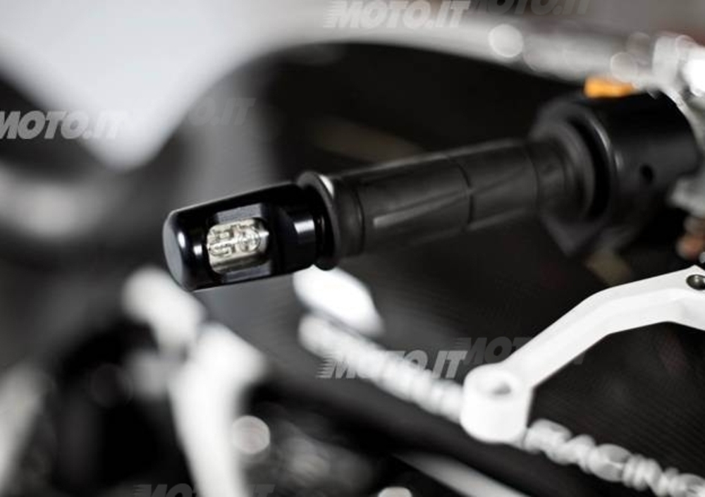 Cerchi e impianto frenante originali, pur raffinati tecnicamente, hanno ceduto il posto ad unità molto più corsaiole; il motore ha guadagnato uno scarico aftermarket - sempre nella configurazione sottomotore - e il blocchetto d'avviamento è stato sostituito da un pulsante (molto automobilistico) con la dicitura "Engine Start" tutto sommato filologicamente corretto: è anch'esso decentrato sul lato della moto...