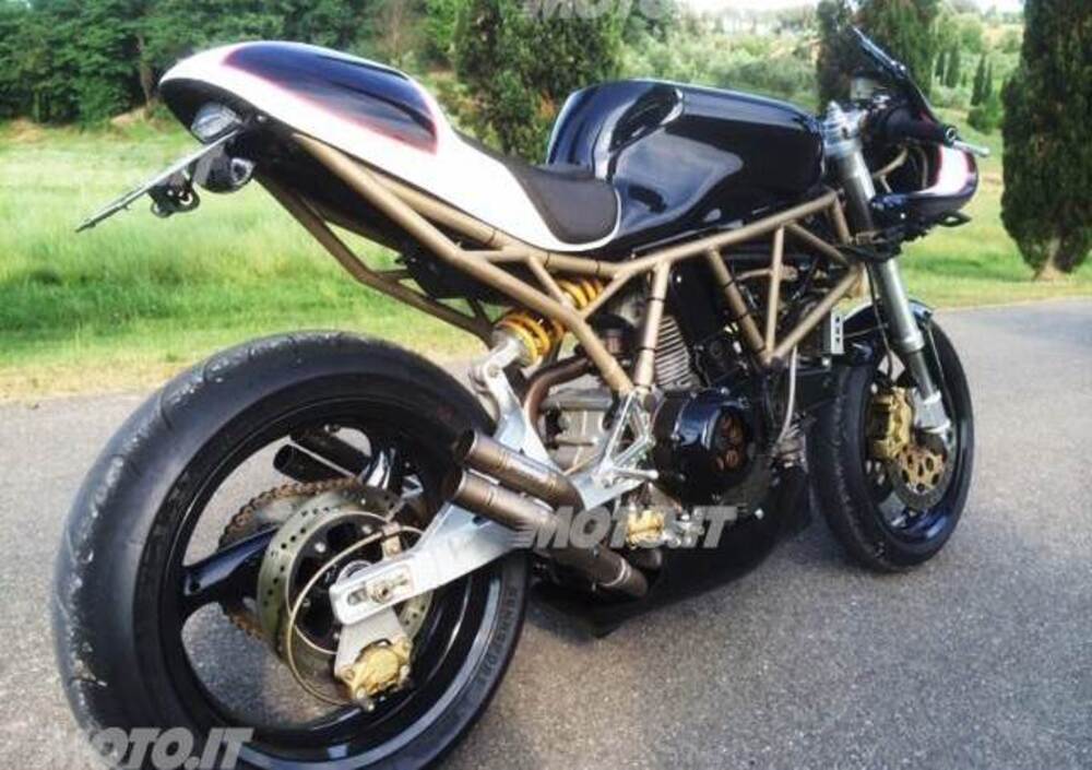 Non è raro che le special nascano da incidenti di percorso quali una scivolata dalle conseguenze più o meno importanti. E’ probabilmente il caso di questa 900 SuperSport del 1999 restaurata e, come specifica giustamente l’inserzione, ricostruita in alcune componenti per ottenere un risultato finale a nostro avviso piuttosto riuscito, almeno per quanto riguarda l’estetica.