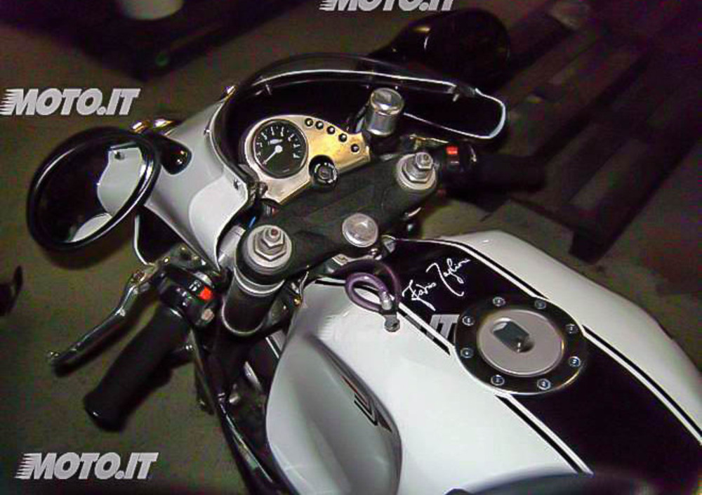 La parte del leone la recitano però le sovrastrutture, che riprendono la linea delle gloriose Ducati vincitrici nell’endurance fra anni 70 e 80 con più di un ammiccamento nell’andamento della carenatura alla 750F1; il serbatoio reca la sezione trasparente che si usava all’epoca per il controllo del livello carburante, ma anche un omaggio – con la firma autografa – all’artefice del bicilindrico ad L di Borgo Panigale, il compianto ingegner Fabio Taglioni.
