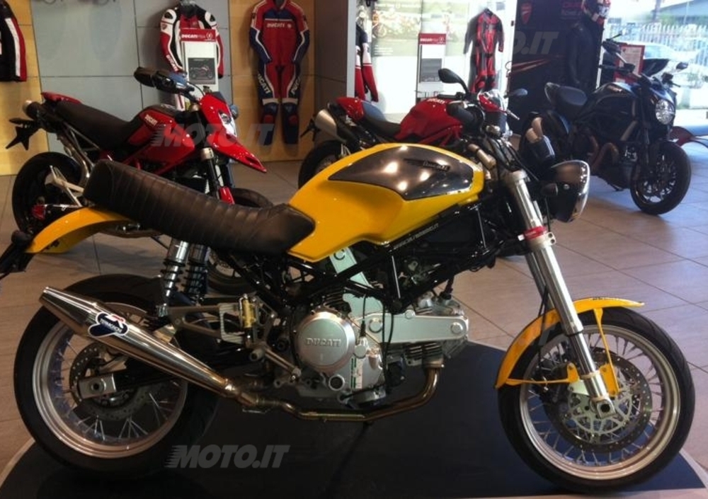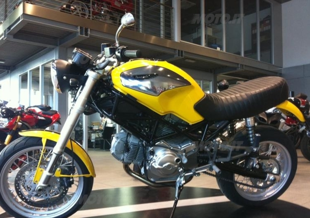Tanti Ducatisti sperano in una riedizione della mitica Scrambler e nel frattempo si arrangiano con quello che hanno e se ne costruiscono una. Simone, titolare della concessionaria Ducati di Pisa, ha fatto di più (leggi l'annuncio su Moto.it). Ha "fuso" una Ducati Monster con una GT1000 Sportclassic e nella sintesi delle due moto ha cercato di avvicinarsi il più possibile alla Srambler.