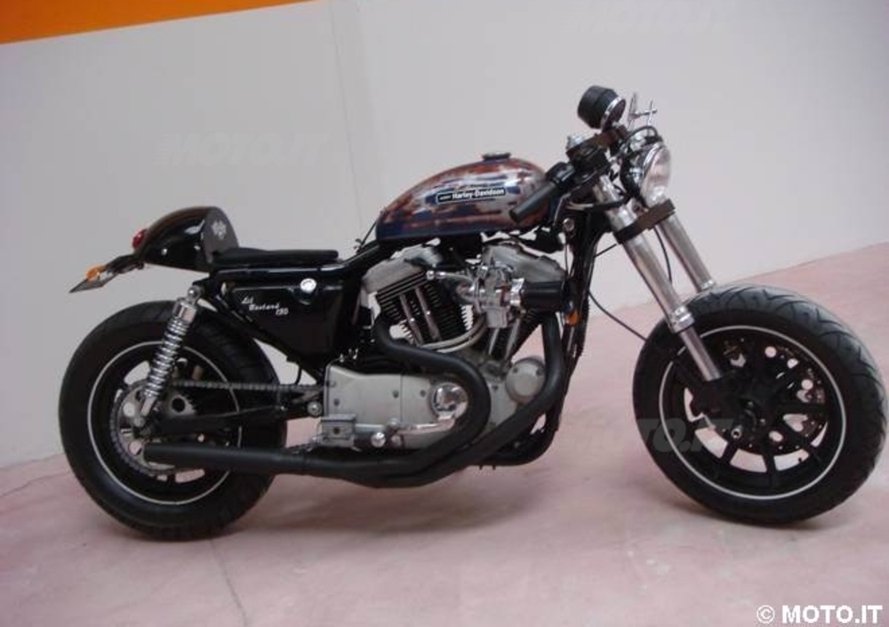 Questa Harley Davidson 1200 Sportster Custom XL ne è un perfetto esempio: pur se evidentemente più minimalista e meno sofisticata delle citate realizzazioni RSD, sa coniugare la spartana aggressività delle sportive retrò a manubri bassi dal gusto british con tocchi inequivocabilmente custom come la finitura del serbatoio o la posizione di guida a piedi avanzati.