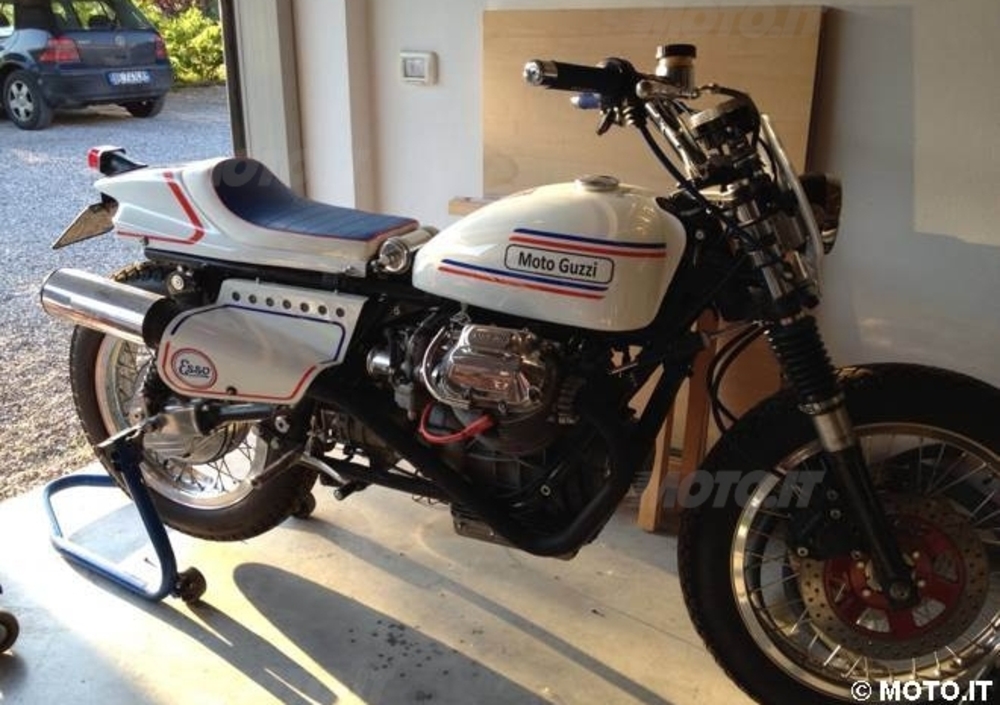 Fra i nostri annunci ultimanente furoreggiano le Dirt Track Replica realizzate partendo da modelli insospettabili. Non possiamo definire diversamente questa splendida Moto Guzzi SP Mille del 1979 trasformata con gusto, misura ed eleganza da icona sportiva fine anni 70 in una racer da sterrato nel più verace stile statunitense, livrea compresa.