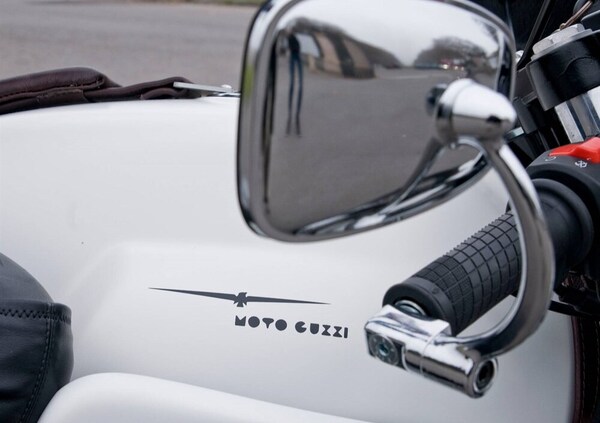 Oltre alla colorazione speciale, completano il look il logo della Moto Guzzi Gambalunga del 1948, il poggia-busto della Moto Maserati 50 T2 SS del 1950 e la sella realizzata monoposto artigianalmente e riscaldabile, che all’interno del codino racchiude un vano porta oggetti.