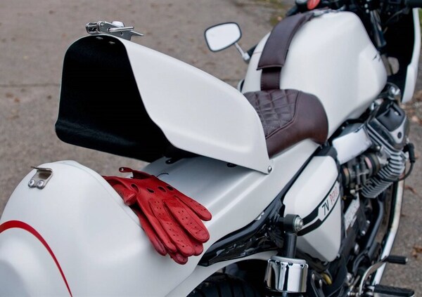 Al giorno d’oggi si vedono in giro moto special di ogni sorta, da quella più ricercata a quella creata in maniera amatoriale da appassionati nel proprio garage di casa. Per quanto riguarda questa Moto Guzzi V7 Peplo, possiamo dire che rientri a pieno titolo nella prima delle due categorie sopracitate. Realizzata da What Bike Are You sulla base di una Moto Guzzi V7 Cafè Classic del 2009, è frutto di uno studio di design approfondito che aveva come scopo quello di ispirare la livrea della motocicletta ad una moda degli anni ‘70, con colori ad impatto come il bianco ed il rosso pompeiano.