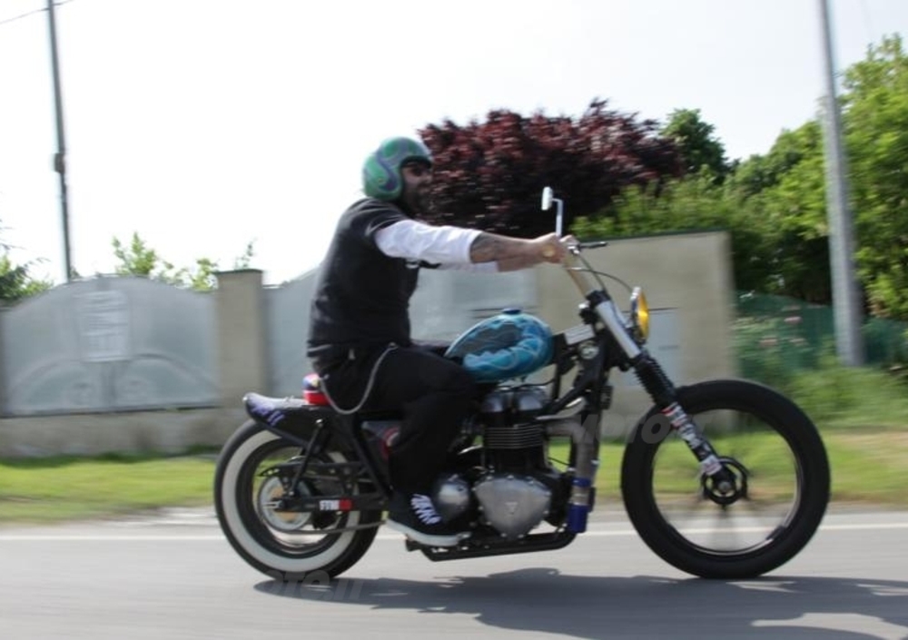 L'originale Triumph Boneville (clicca qui per leggere la sua scheda tecnica e vedere la moto standard) del 2004 ha lasciato il posto alla bella chopper special che vi mostriamo.