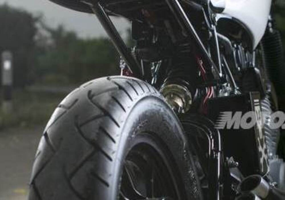 La distribuzione dei pesi carica maggiormente l'avantreno anche grazie a steli forcella sfilati nella piastra, e visivamente il carico sul posteriore si azzera grazie ad una sella minimalista ormai da considerarsi "di moda", ben completata da un faro posteriore a led nascosto all'interno del telaietto reggisella. Il propulsore subisce il semplice montaggio dello scarico IXIL sdoppiato a passaggio basso.