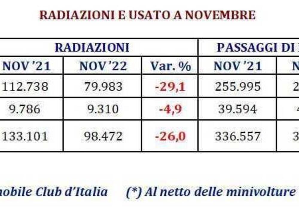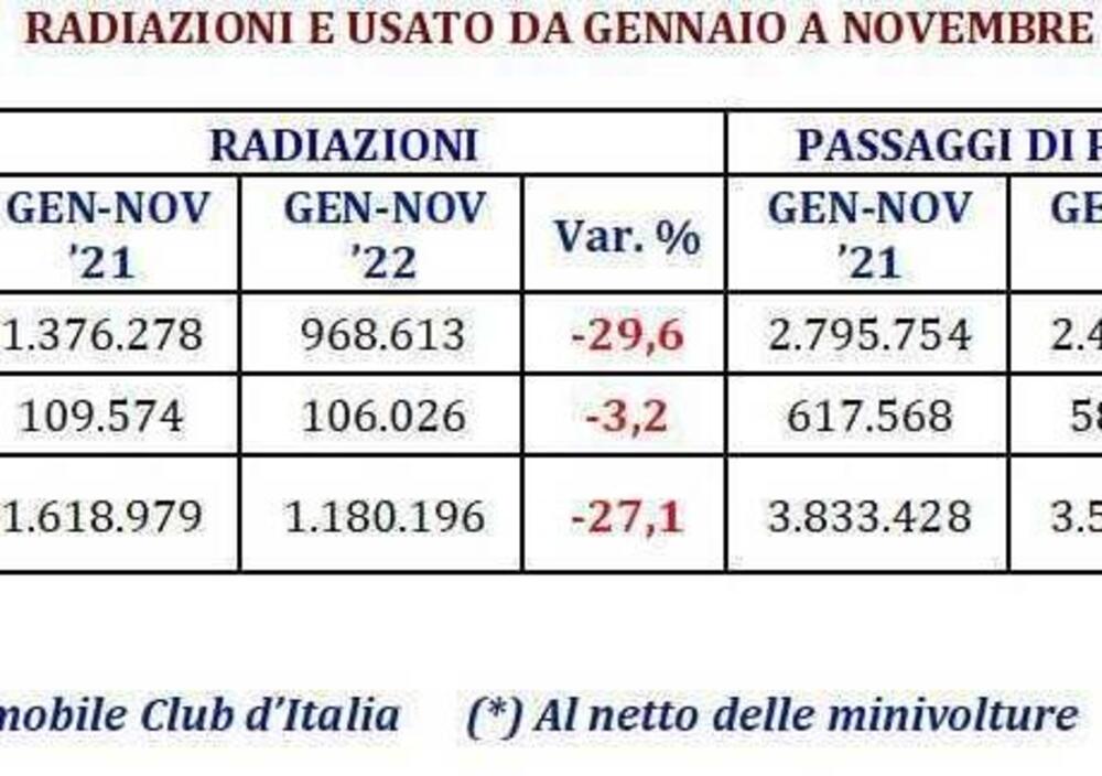 Da gennaio a novembre i passaggi di proprietà netti hanno raggiunto le 585.564 unità, segnando una diminuzione del 5,2% rispetto ai primi undici mesi del 2021.