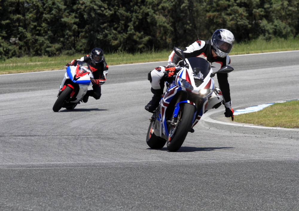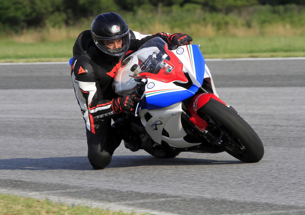 Giunti in circuito, gli istruttori Lorenzo Campani e Nicola Bollea ci introducono al tracciato greco e suddividono i piloti a seconda delle loro capacità: il sottoscritto si dichiara immediatamente un volenteroso principiante disposto a perdere le proprie sicurezze a favore di un grammo di felicità e gli viene quindi immediatamente garantito un supporto diretto e personale: subito in pista con Nicola a farmi da guida e osservatore per capire quanta strada separi il mio ginocchio dall’asfalto: venti minuti gli sono sufficienti a per individuare tutte le mie carenze in fatto di posizione di guida, traiettorie, tecnica; ammetto che speravo meglio ma forse il fatto di avere calcato un autodromo l’ultima volta 7 anni fa ha il suo peso.