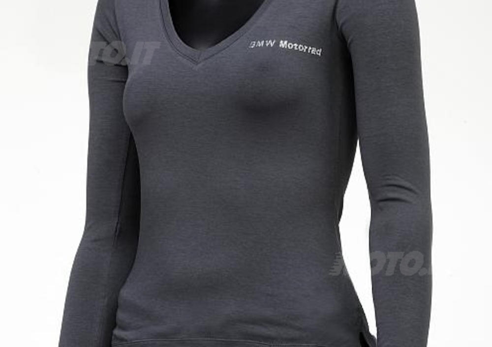 La t-shirt con maniche lunghe e con scollo a v è un capo irrinunciabile nel guardaroba della donna dinamica e sportiva. Un capo versatile che può essere indossato da solo, abbinato ad una delle felpe della collezione BMW Motorrad Lifestyle o anche come pratica sottogiacca nelle occasioni più formali.