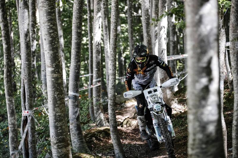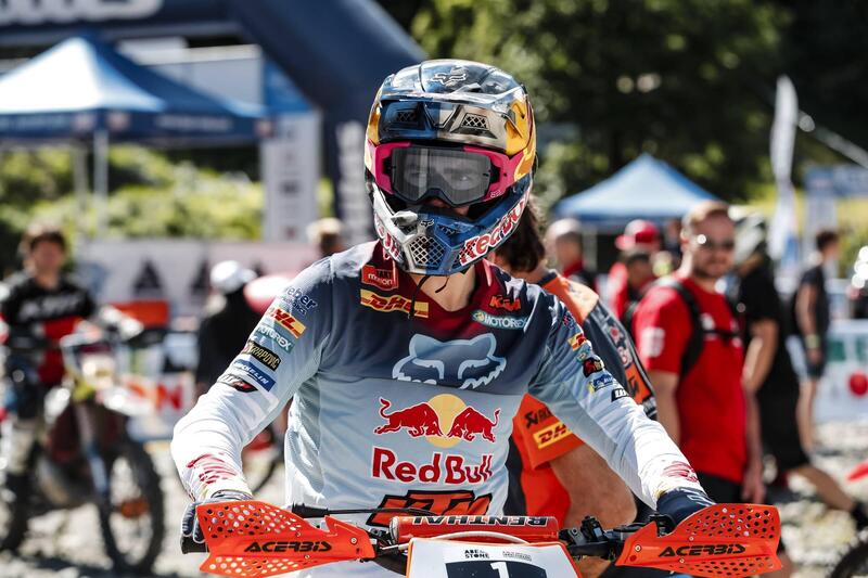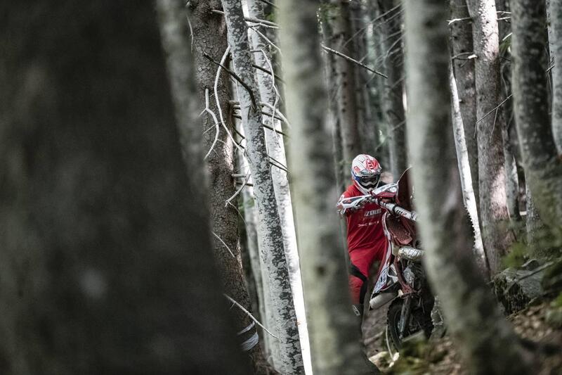 Intanto qui all’Abetone (e Val di Luce poiché la Gara sta cercando anche di far fare pace ai due versanti della stessa, stupenda Montagna), c’è una proposta che evoca l’intera storia dell’Hard. Quella di Tadeusz Blazusiak, terzo al termine delle qualifiche. Il mito polacco, oggi bandiera e spada di GasGas, trova nelle difficoltà omogenee di Abestone il vaccino contro la noia, lui che si nutre del divertimento di andare in Moto sulla lama del limite praticamente da quando è nato.