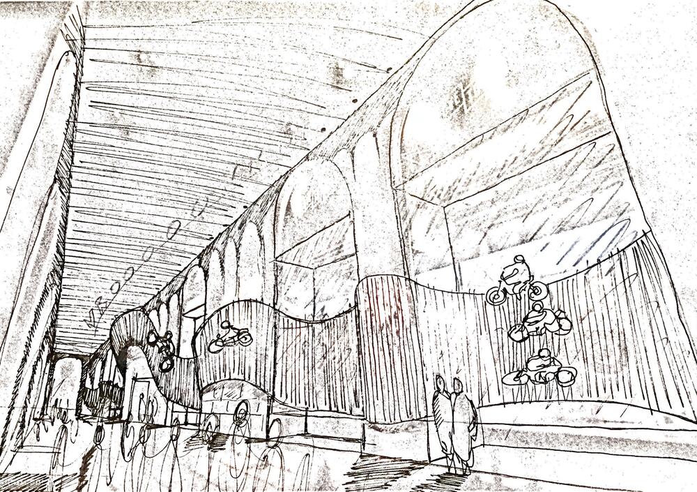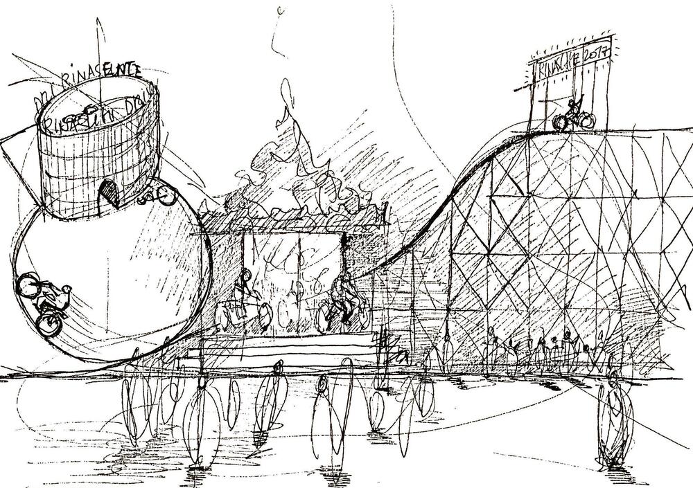 Un immaginario che Urban ha voluto evocare disegnando una passerella che avvolgerà gli archi del palazzo progettato da Ferdinando Reggiori e che, come lui stesso ha avuto modo di raccontarci, trova origine in un ricordo infantile.