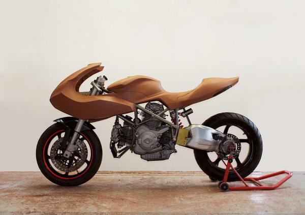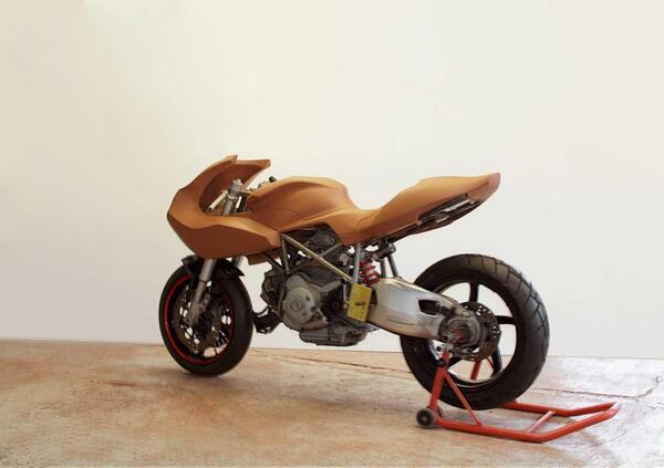Luca ha disegnato e realizzato questa moto, pensando a una sportiva semplice e divertente, che al tempo stesso fosse anche elegante e unica, linee moderne ma con richiami classici, e abbinamenti cromatici ben riconoscibili.