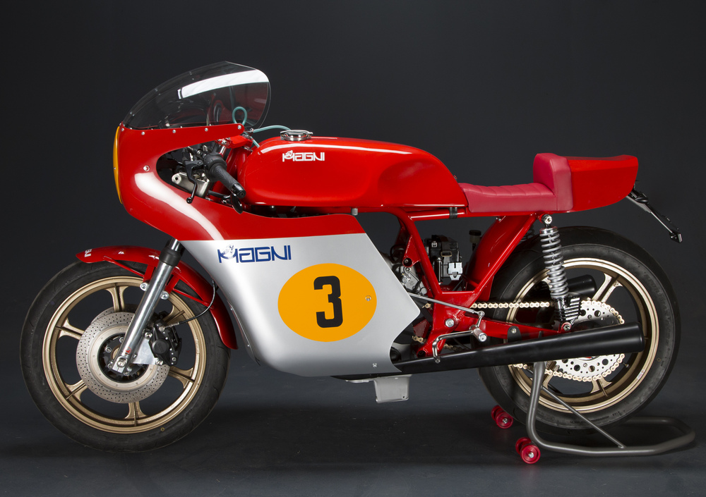 Il Cavalier Arturo Magni, leggendario direttore del reparto corse MV che dal 1949 al 1976 che ha accompagnato il glorioso marchio varesino alla conquista di ben 75 titoli iridati (37 di marca e 38 piloti), nel 1977 fondò la ditta Magni, con l’intento di realizzare motociclette speciali e leggere costruite attorno a motori Honda, Moto Guzzi, BMW, Suzuki e, naturalmente, MV Agusta: in particolare i quadricilindrici bialbero da 750 cc di allora, “vestiti” ispirandosi anche ad alcune celeberrime MV da Gran Premio.