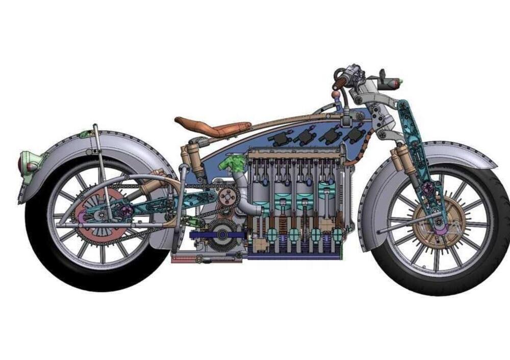Con il suo stile americano e il quattro cilindri disposto longitudinalmente ricorda le Henderson o la mitica danese Nimbus, ma gli accurati rendering in 3D ci svelano la sua contemporaneità. La Magnolia 4 dunque è sì una moto degli anni Venti, ma di questo secolo! Si tratta di un progetto ancora una volta estroverso e di sontuosa rivisitazione di elementi classici realizzato dal designer JT Nesbitt del Bienville Studios di New Orleans che già negli ultimi anni ci ha regalato interpretazioni suggestive ispirate proprio a quel periodo come le elettriche Curtiss Motorcycles. A Nesbitt piace riprendere forme del periodo pioneristico e con manierismo riattualizzarle o, come è più il caso della Curtiss, spingersi più verso quello che è un design retro-futurista. Stavolta però, a differenza della Curtiss, non ci sono batterie.