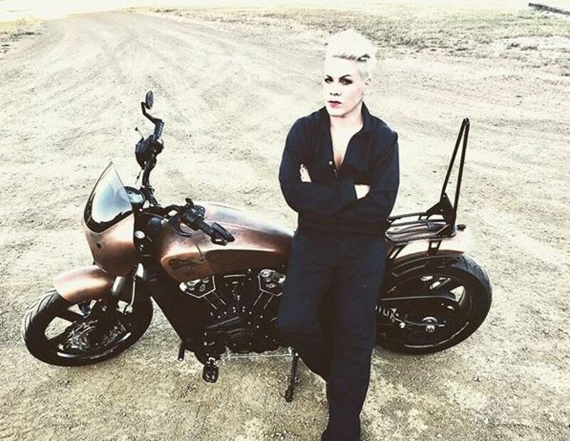 Un altro concentrato di grinta tutta femminile, la cantante Pink, innamorata della sua Indian personalizzata. In passato l'abbiamo vista su Triumph e Harley, oltre che su qualche chopper e special.