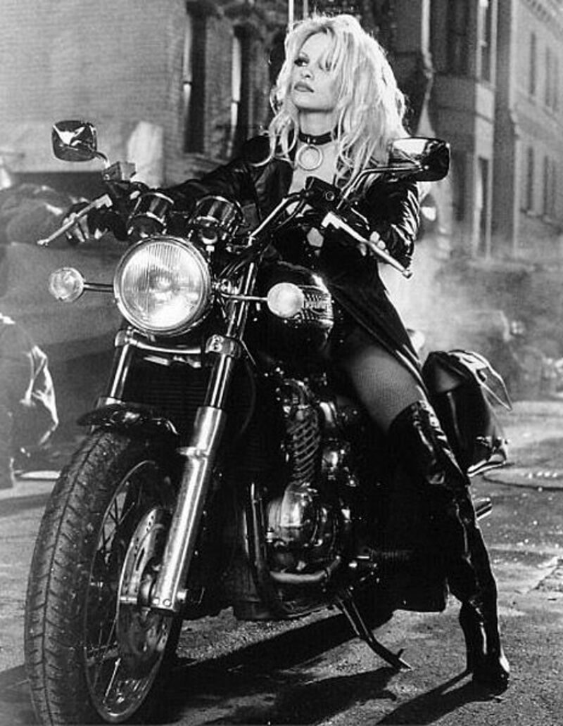 Con una vita tutta rock come la sua, poteva Pamela Anderson non amare le motociclette? Tutta vestita di pelle fa certamente la sua bella figura ma, ci sorge un dubbio? Pamela, vista la mise e il trucco perfetto, la moto la guidi o ci posi soltanto?