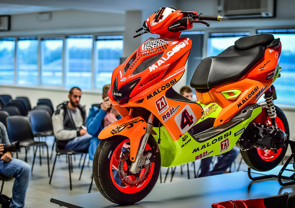 Certo, con gli anni si cresce, e questo vale anche per i mezzi e le cilindrate che ci accompagnano nel nostro, si spera lungo, percorso motociclistico. Ma tornare ragazzini, anche solo per pochi istanti, è una sensazione che ti lascia quel giusto sapore di malinconia, incoscienza e spensieratezza che solo a quell'età si può avere. E grazie a un'azienda italiana come la Malossi, che può vantare ben 85 anni di esperienza, abbiamo potuto riassaporare in pista il gusto che solo uno scooter con kit omologato sa dare. Il nostro approccio con i mezzi a disposizione è avvenuto gradualmente, partendo con una simpatica Vespa GTS 125 e proseguendo con l'Honda Forza 125, per poi terminare con il mezzo più pompato presente sul circuito, il Piaggio Zip SP del Trofeo Malossi, da 70 kg per 33 cv!