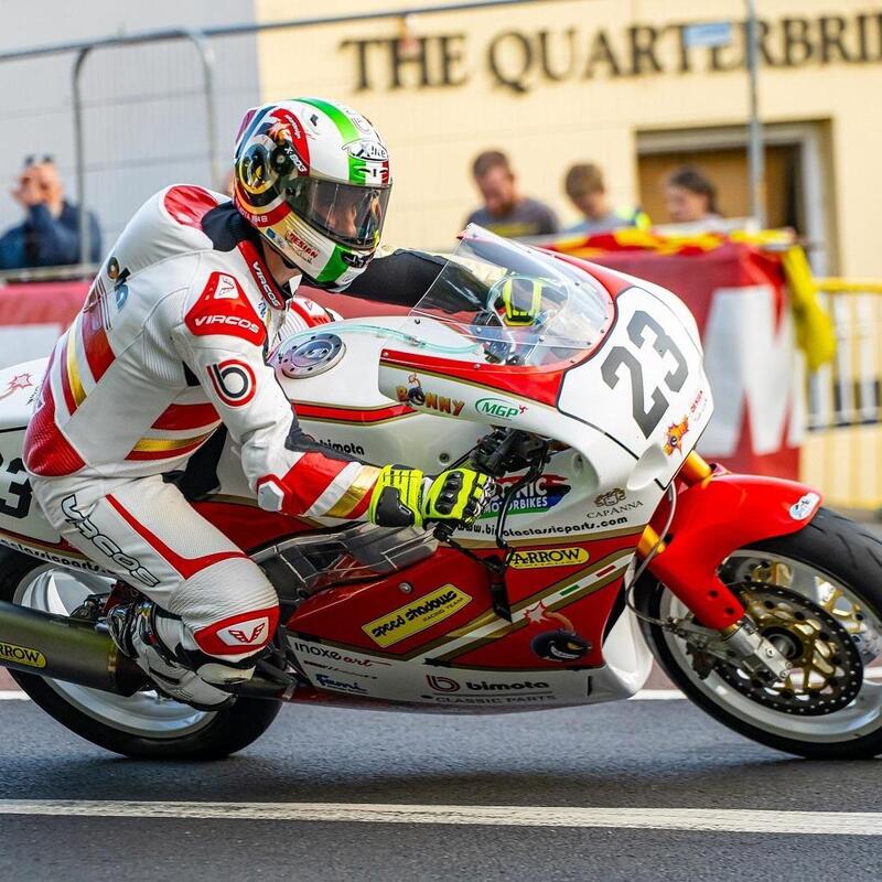 Disponibile come sempre, Stefano Bonetti mi risponde al telefono dalla sua officina: è lui una delle voci più autorevoli in Italia per capire qualcosa di Tourist Trophy e in generale delle corse sull'Isola di Man. Sta per partire per Douglas dove parteciperà con il Team Speed Shadows al Manx GP - cui abbiamo dedicato un articolo per spiegare in breve cos'è - stavolta raddoppiando l'impegno rispetto allo scorso anno quando il binomio italiano ha portato la Bimota YB4 E.I. R sul Mountain Course ma con poca (o molta, dipende dai punti di vista) fortuna: problemi tecnici al motore stavano per impedire a Stefano di prendere il via ma la solidarietà e la disponbilità di tutto il paddock delle road race gli ha permesso di correre e di arrivare 15esimo con un motore rodato in gara.