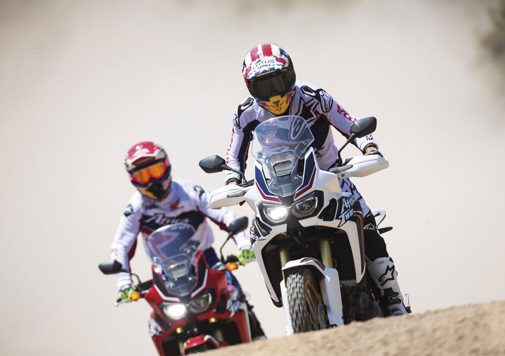 Cosa succede quando due tra i migliori piloti del mondo provano una moto che, ancor prima del lancio sul mercato, è già leggendaria? Nel nord della Spagna, Marc Marquez del Team Honda MotoGP e Joan Barreda del Team HRC Rally, mostrano di cosa è capace la nuova CRF1000L Africa Twin. Alla guida di entrambe le versioni, sia con cambio a doppia frizione DCT (Dual Clutch Transmission) che con tradizionale cambio manuale, i due piloti Honda ci raccontano le loro sensazioni in sella alla nuova sensazionale maxienduro Honda.