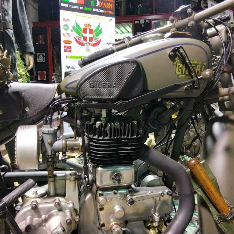Per cui il coloro diventa sabbia opaco, il faro ha la griglia di protezione, sul lato destro della moto trova posto una capiente borsa militare in tela pesante e sul lato destro è agganciata la tanica della benzina da 10 litri.