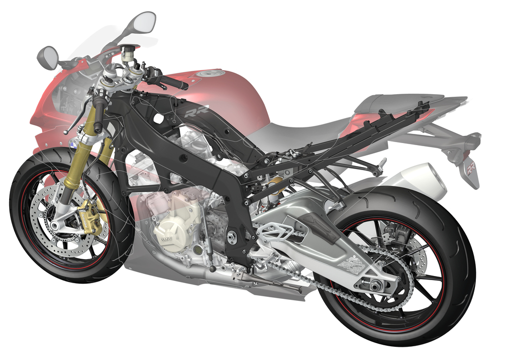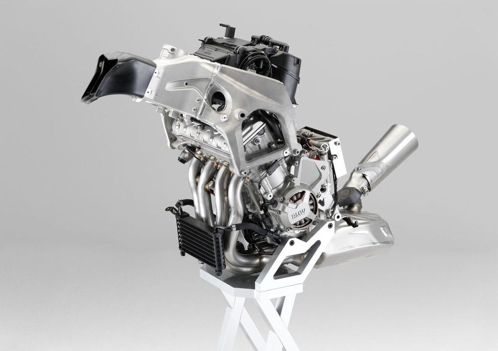Nel motore BMW, che è stato il primo quadricilindrico di serie ad adottare i bilancieri a dito con riporto di DLC, il comando della distribuzione prevede una coppia di ingranaggi, mossa dall’albero a gomiti, che aziona una catena posta sul lato destro, la quale trascina in rotazione i due alberi a camme. Questo motore è l’unico 1000 a quattro cilindri ad avere un alesaggio di 80 mm, cosa che consente l’adozione di valvole di aspirazione da ben 33,5 mm di diametro. Nello sviluppo si è lavorato in particolare al contenimento delle perdite per attrito e al miglioramento della respirazione (condotti di aspirazione con nuova geometria, airbox con maggior volume).