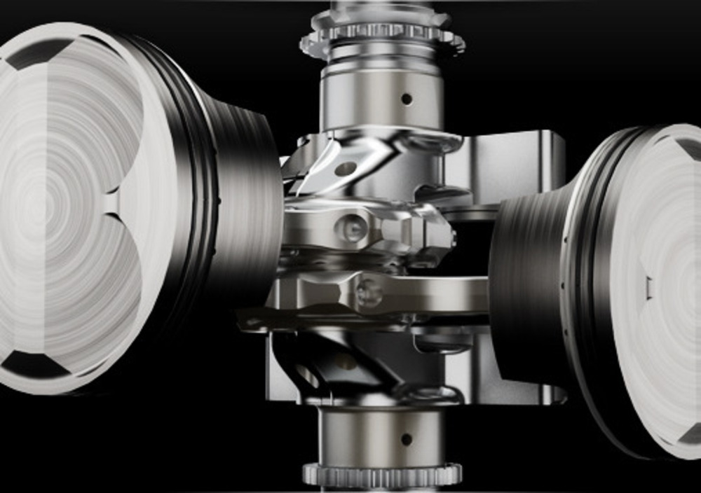 Questo motore, il cui basamento si “apre” secondo un piano mediano verticale, è davvero “estremo”; basta infatti pensare all’alesaggio inusitato di ben 116 mm. In aggiunta a quelle appena indicate, presenta anche altre interessanti particolarità, come le canne umide, del tipo con bordino di appoggio superiore, che vengono montate subito prima della chiusura del basamento. I cilindri sono infatti incorporati in quest’ultimo, che viene ottenuto per mezzo di un raffinato sistema di pressofusione sotto vuoto denominato Vacural.