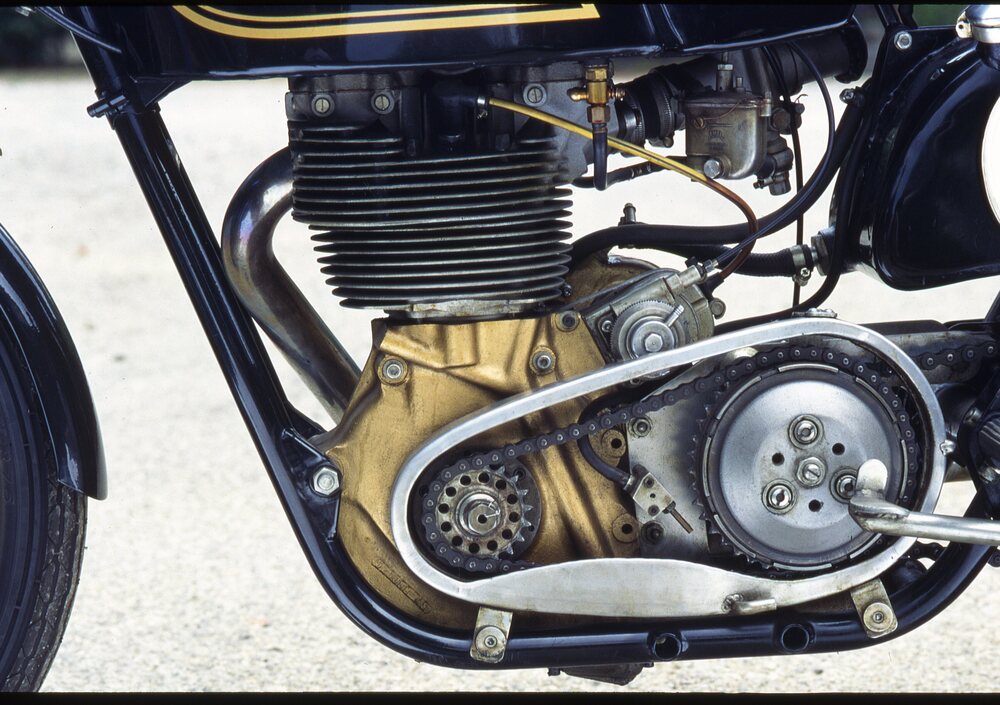 In un lontano passato la catena lavorava quasi sempre allo scoperto. Poi è stata racchiusa in un carter o in un vano laterale e ha potuto essere lubrificata in maniera continua mediante olio, cosa che ha fatto aumentare enormemente la sua durata. Solo in alcune moto da competizione, generalmente di fabbricazione inglese, ha continuato a essere scoperta, fino all’inizio degli anni Sessanta; la durata in questo caso non era importante…