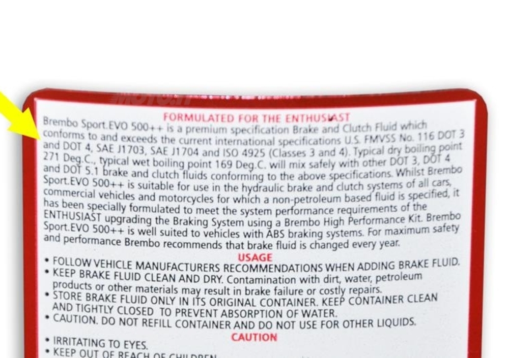 Occorre sottolineare che è sufficiente una percentuale molto ridotta di acqua per causare un sensibile scadimento delle prestazioni che il fluido è in grado di fornire. Passando da zero (completa assenza d’acqua) al 2%, la temperatura di ebollizione di un DOT 4 scende di oltre 50 °C, e per un DOT 3 la diminuzione è ancora maggiore. Una presenza di acqua dell’ordine del 3% significa che il liquido deve essere cambiato senza indugio. Una eventuale colorazione scura del liquido non vuol dire che esso debba necessariamente venire sostituito. In genere è la pigmentazione della gomma sintetica con la quale esso è a contatto a determinarla, senza causare uno scadimento della funzionalità.